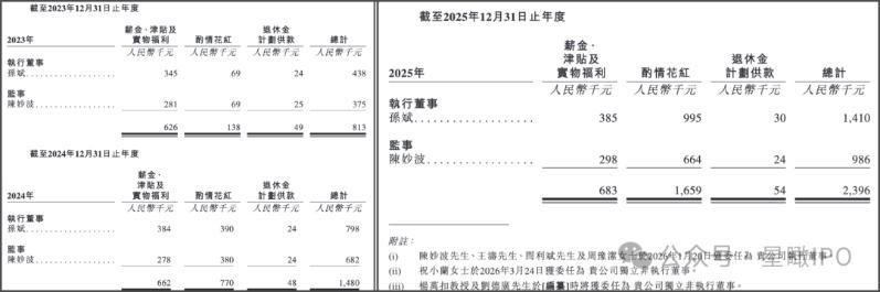 值得注意的是,由于2023年—2025年上海易景业务整体呈增长趋势,董事长孙斌与执行董事陈妙波的薪酬也迎来大幅上涨。2023年—2025年,孙斌的薪酬总额从43.8万元上涨至141万元;陈妙波的薪酬总额从37.5万元上涨至98.6万元。